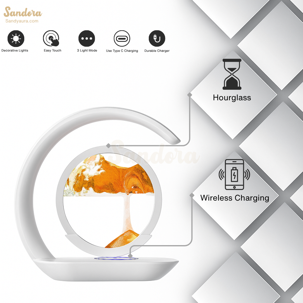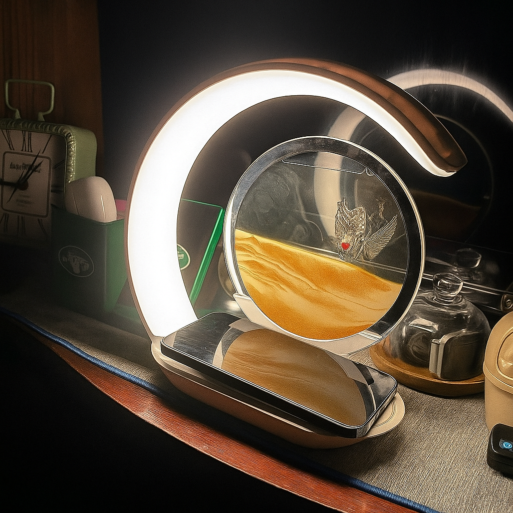 More than just illumination, Sandora is a gentle pause in the rush of life.A modern design blending mesmerizing sand motion, ambient lighting, and seamless wireless charging